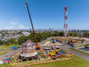 現場状況:歴史的建造物の補強工事・場内施設の撤去工事・防音壁設置工事を行っています。